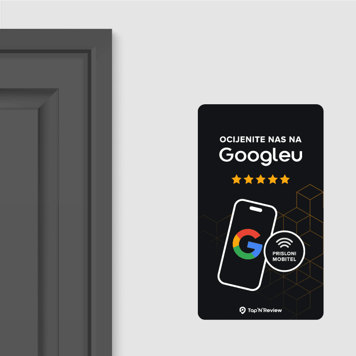 S Tap’N’Review NFC pločicama, jednostavan dodir telefona vašeg klijenta omogućuje mu da brzo ocijeni vašu tvrtku na Googleu – što olakšava povećanje vaše online reputacije!